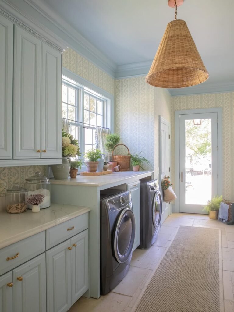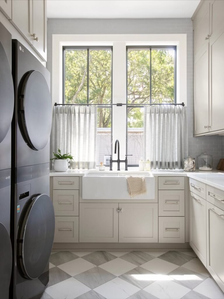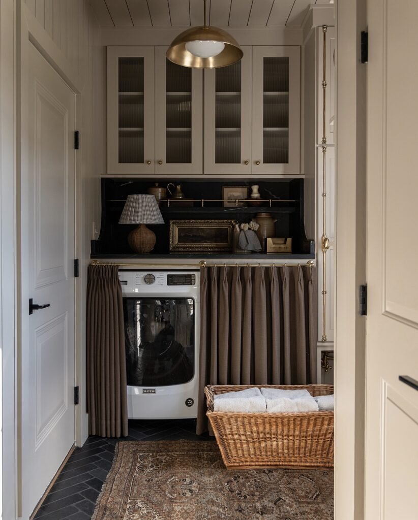 Since these spaces are typically compact, they’re ideal for experimenting with design in ways you might hesitate to elsewhere. Think expressive patterns, confident color choices, or lighting that adds character rather than just illumination. If your goal is to create a laundry room that feels organized, efficient, and visually elevated, these ideas are a great place to start.