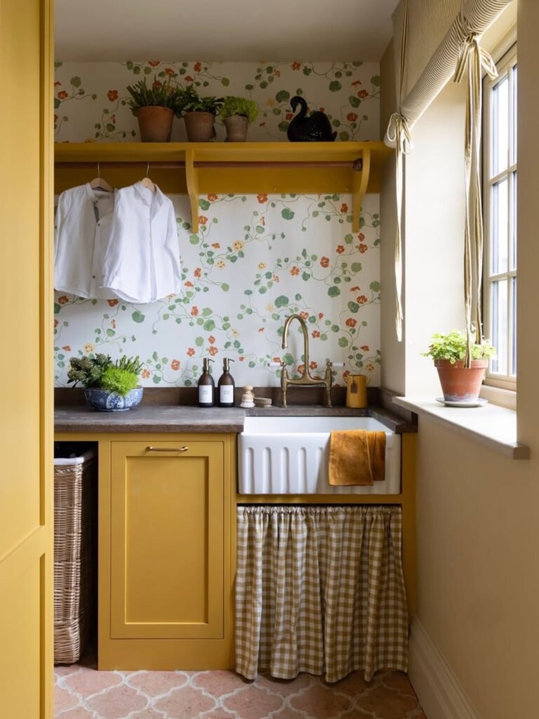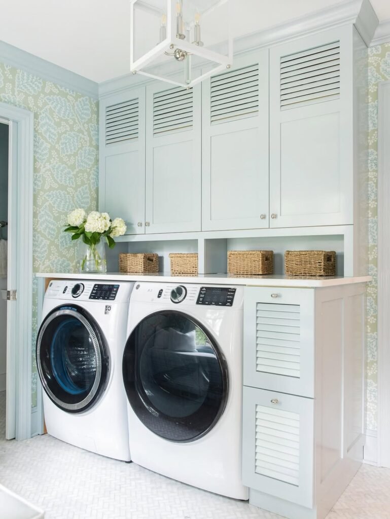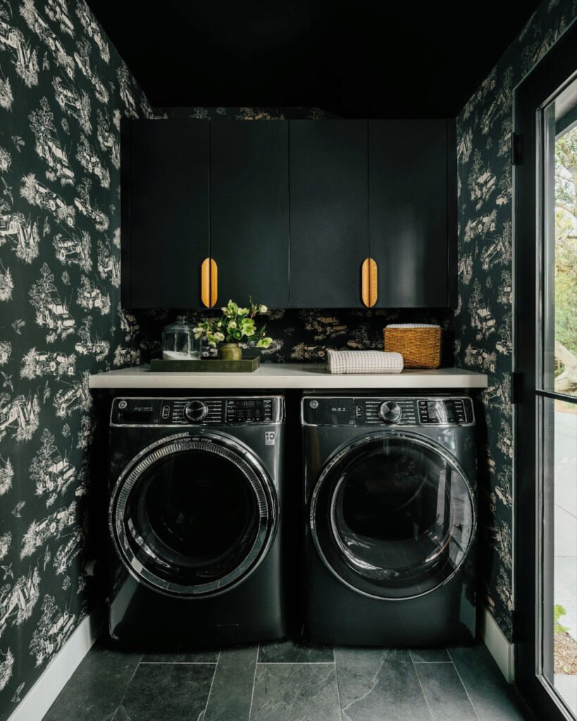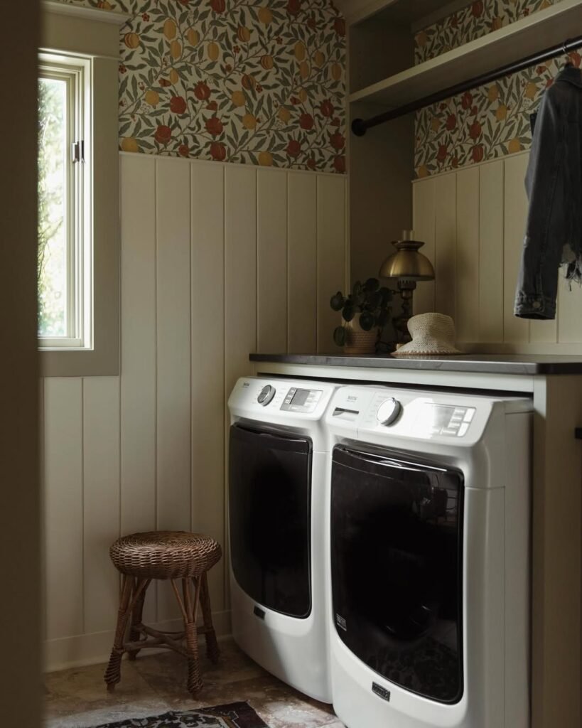 Wallpaper brings instant character to the laundry room and allows for a level of creativity that paint alone can’t always achieve. With so many patterns and finishes available, it’s easy to find something that shifts the mood of the space entirely. wallpaper feels less intimidating and becomes a simple way to add personality, depth, and a sense of intention.