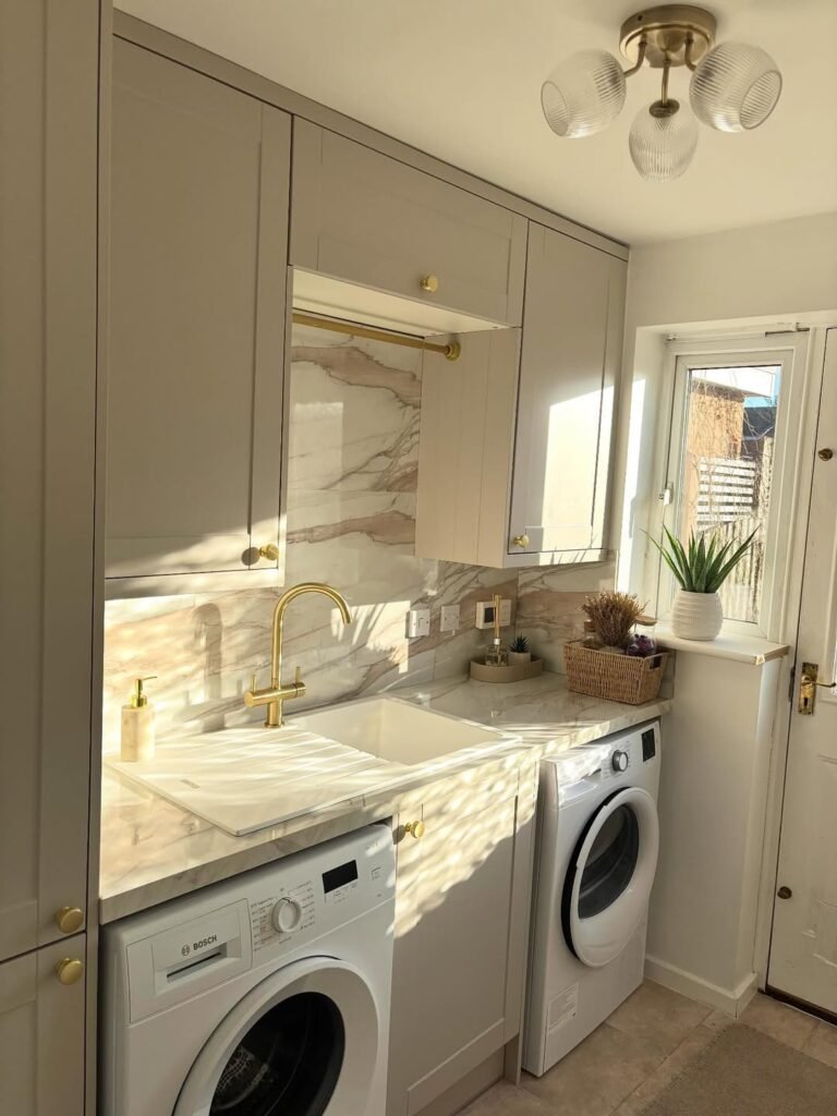 For those who prefer a sleek, clutter-free look, consider hiding your appliances behind cabinet doors. This simple trick instantly creates a clean, streamlined aesthetic, making your laundry space feel more organized and cohesive. By keeping appliances out of sight, you also give yourself more freedom to focus on other design elements .