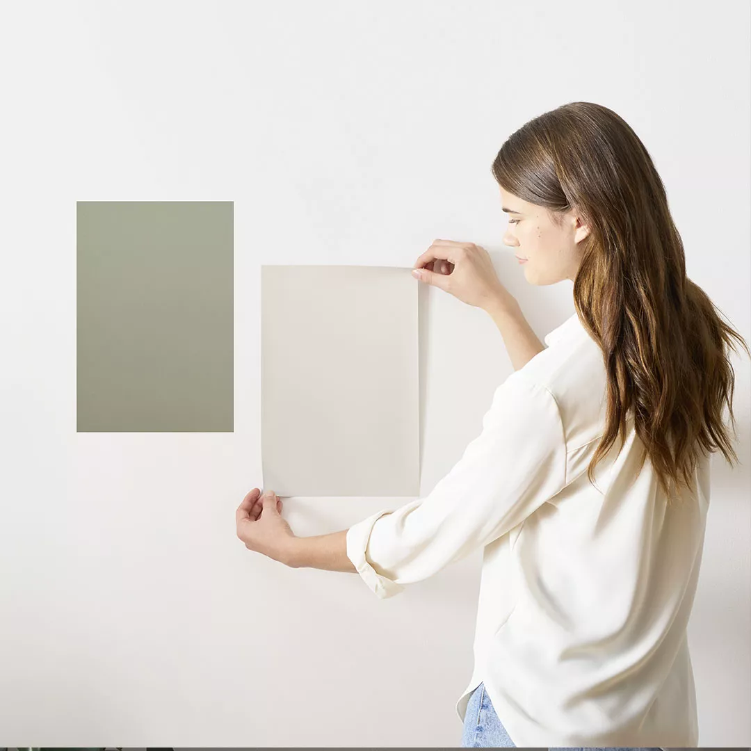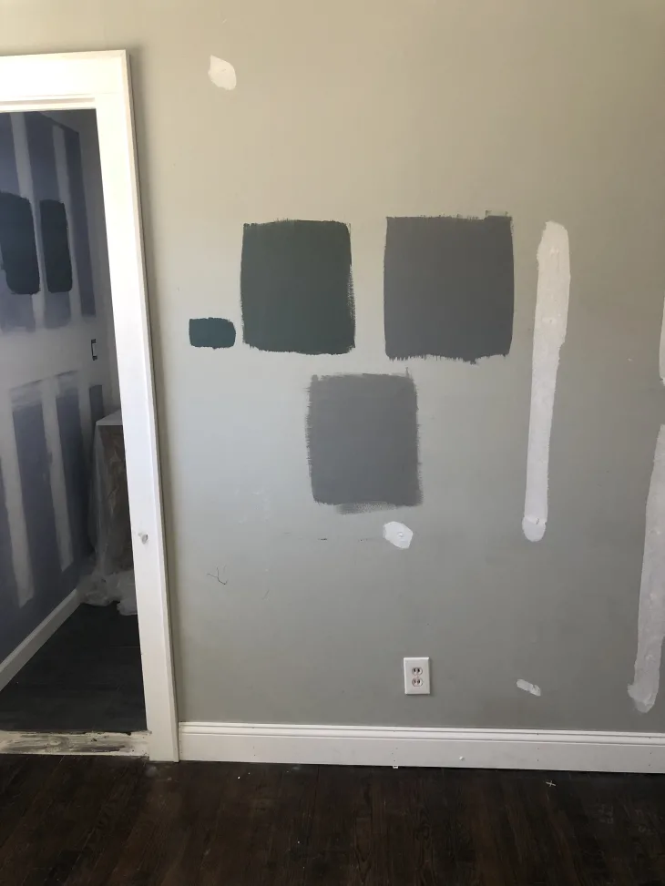 if you don’t know what these are, basically you can order 8×8” sheets with your favorite colors then stick them to different walls and surfaces, this is best if you’re not sure you’ll start painting right away,  Benjamin Moore and Sherwin-Williams have them, or samplize.com they have Farrow & Ball as well.