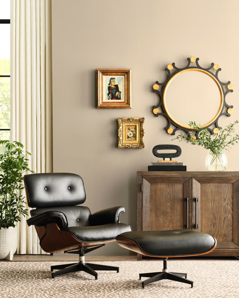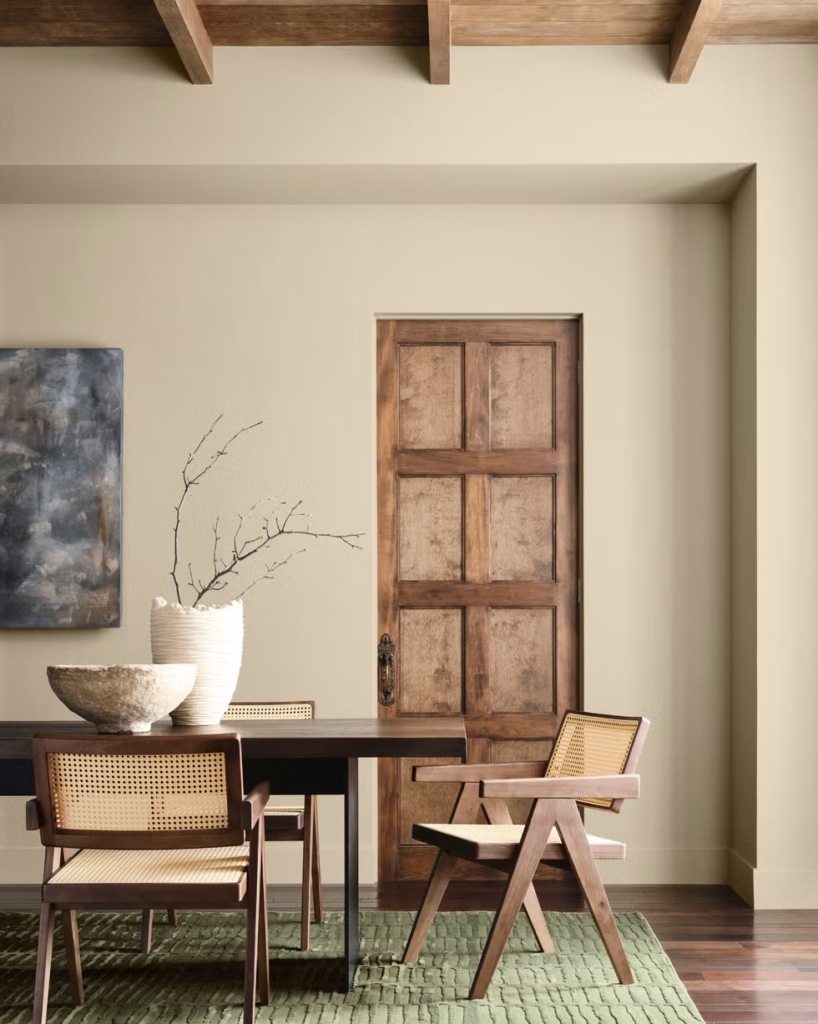 According to Sue Wadden, director of color marketing at Sherwin-Williams, this choice came from the shift to a more lasting living style, where people can feel their living style comes from their identity and not just a passing trend. “Universal Khaki stood out because of its timeless, essential quality. It’s a foundational neutral that feels pared back yet endlessly adaptable.” Wadden Said. And I agree, this color makes me feel nostalgic and yet it’s modern, especially if there are plenty of natural materials and elements.