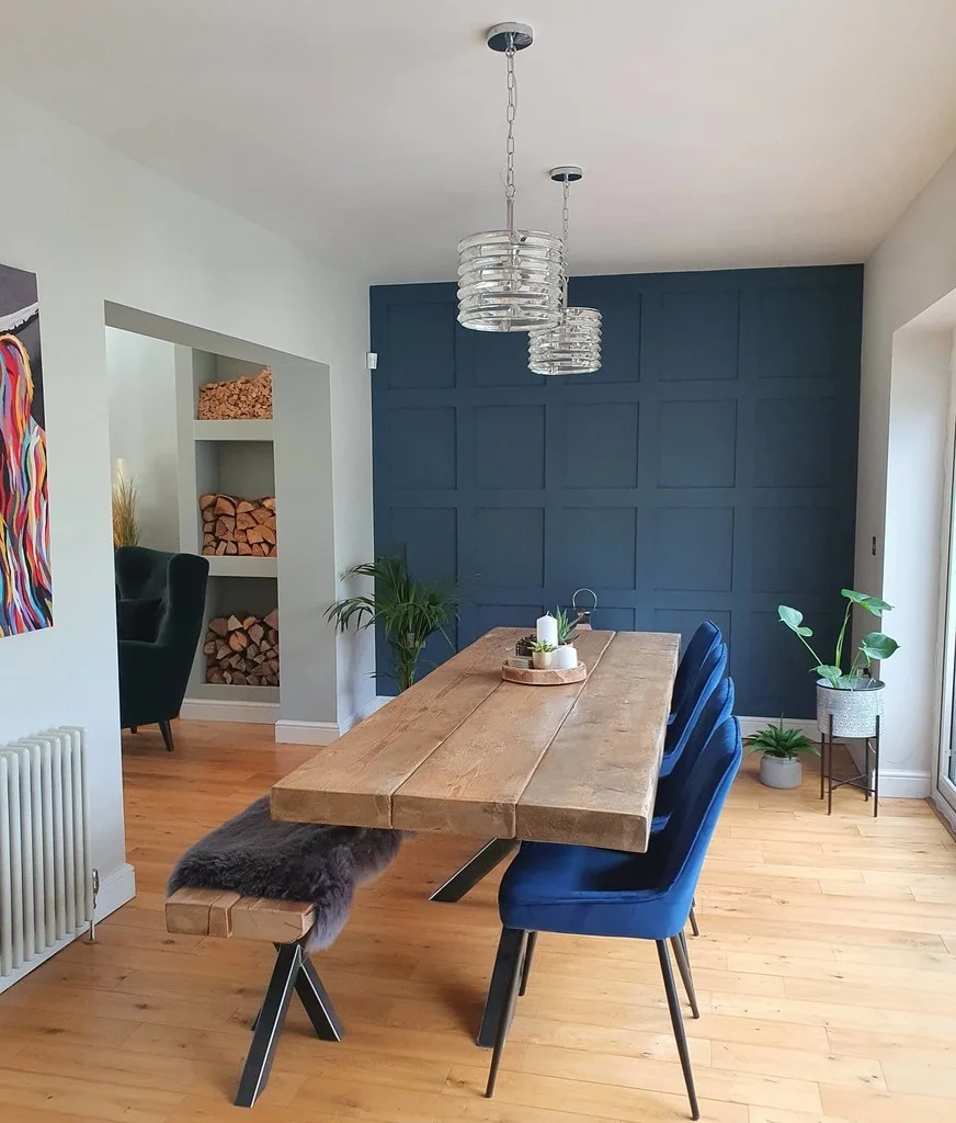 Back to dark colors with this contemporary blue, it’s a calming color yet it can spark creativity, that’s why it works perfectly in this room since it’s a bedroom and an office, the owner wanted a multi purpose color and his choice paid off in a great way.